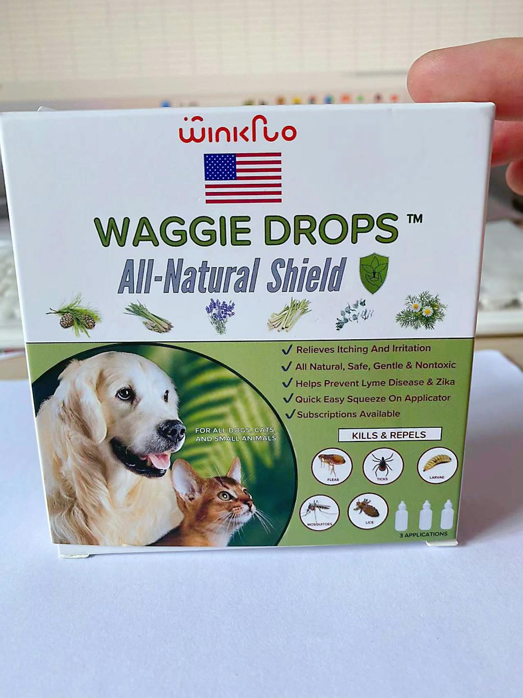 Waggie Drops™ provides 100% natural protection from fleas, ticks, and mosquitoes for dogs, cats, and even other animals such as rabbits and ferrets!