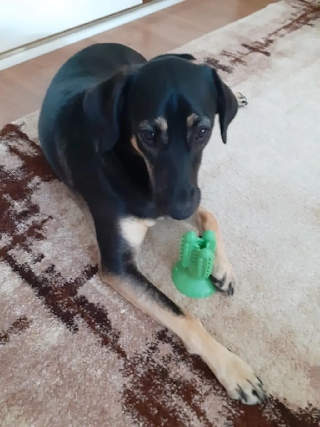 My Sandy loves this toy! She doesn’t know it's for her teeth. I’m so glad I found this because every other rubber toy she has gnawed through has to be taken away for safety reasons. The only other chew toy that has lasted is an oak log that now is splintering. By the way, sandy is 6 months old and has sharp teeth so she’s put it to the test!